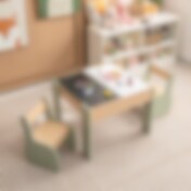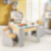3-i-1 Aktivitetsbord med två stolar för barn – Natur / grå
