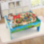 80-delars trätågset med bord – färgglad järnvägsbana för barn