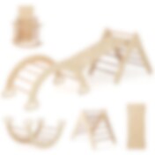 3i1 Klätterset i trä natur för barn från 1 år – triangel, båge och ramp