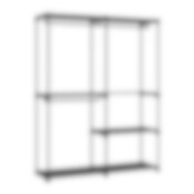 Klädställ med 3 klädstänger och öppna hyllor i svart stål