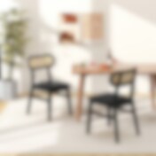 Set med 2 matstolar i trä med rottingrygg – Svart