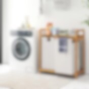 Tvättkorg i bambu med hylla och 2 avtagbara påsar – Vit/trä