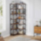 Industriell hörnbokhylla med 7 hyllplan och stabil metallram / hörnhylla i industriell stil / bokhylla för hörn