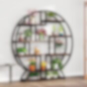 Växthylla 7 nivåer i trä och metall 180 cm – Vintage brun/svart / blomhylla med flera hyllplan och krokar