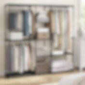 Klädställ med 2 klädstänger och justerbara hyllor - Grå