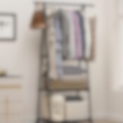 Klädställ med 3 klädstänger och öppna hyllor i svart stål