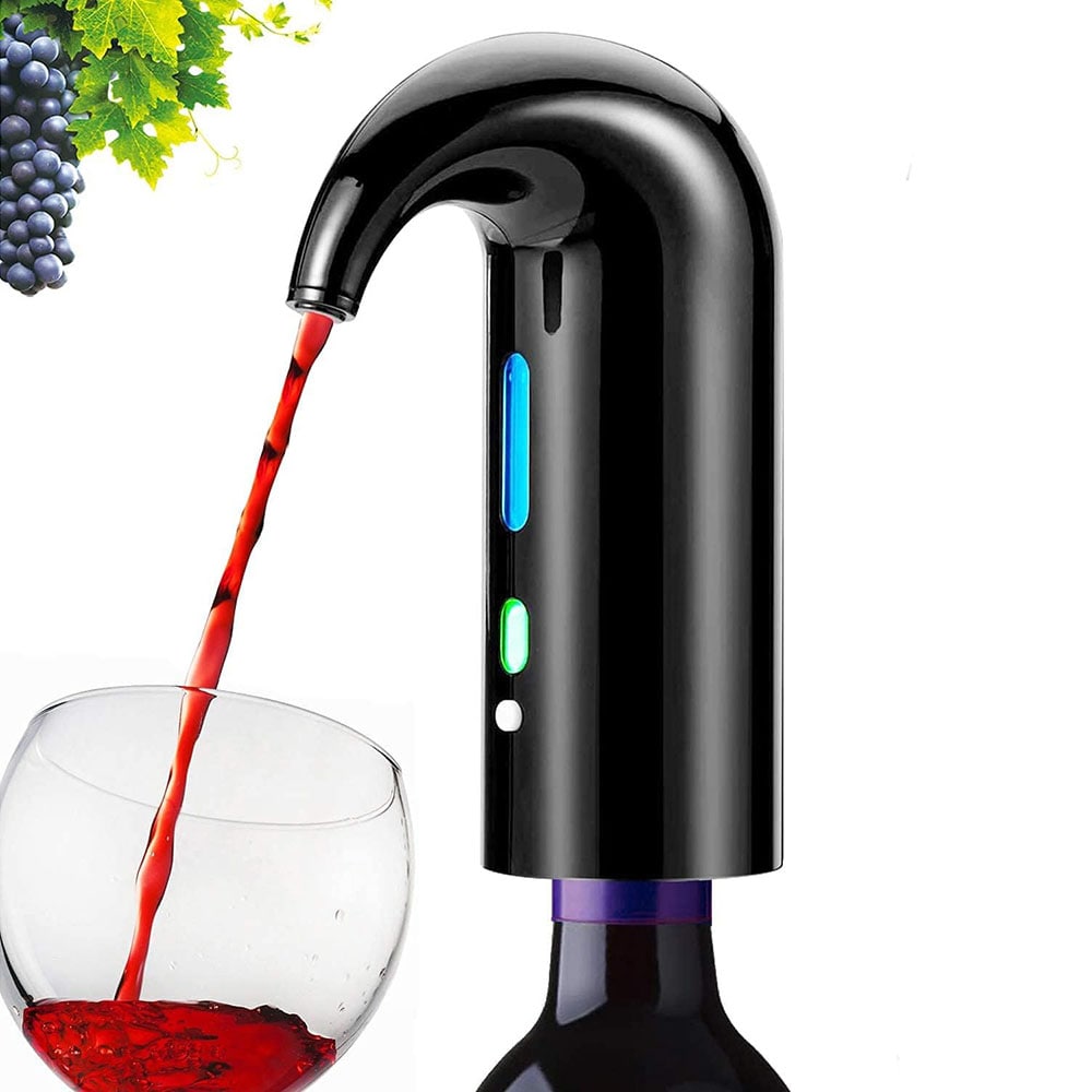 Elektrisk vinöppnare med vakuumstoppare, folieskärare och hällpip