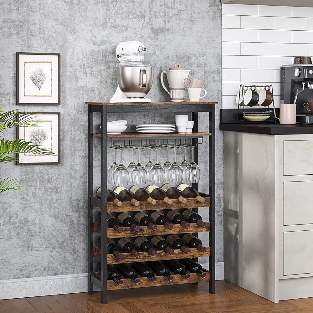 Vinställ för 24 vinflaskor med glashållare - Brun/Svart