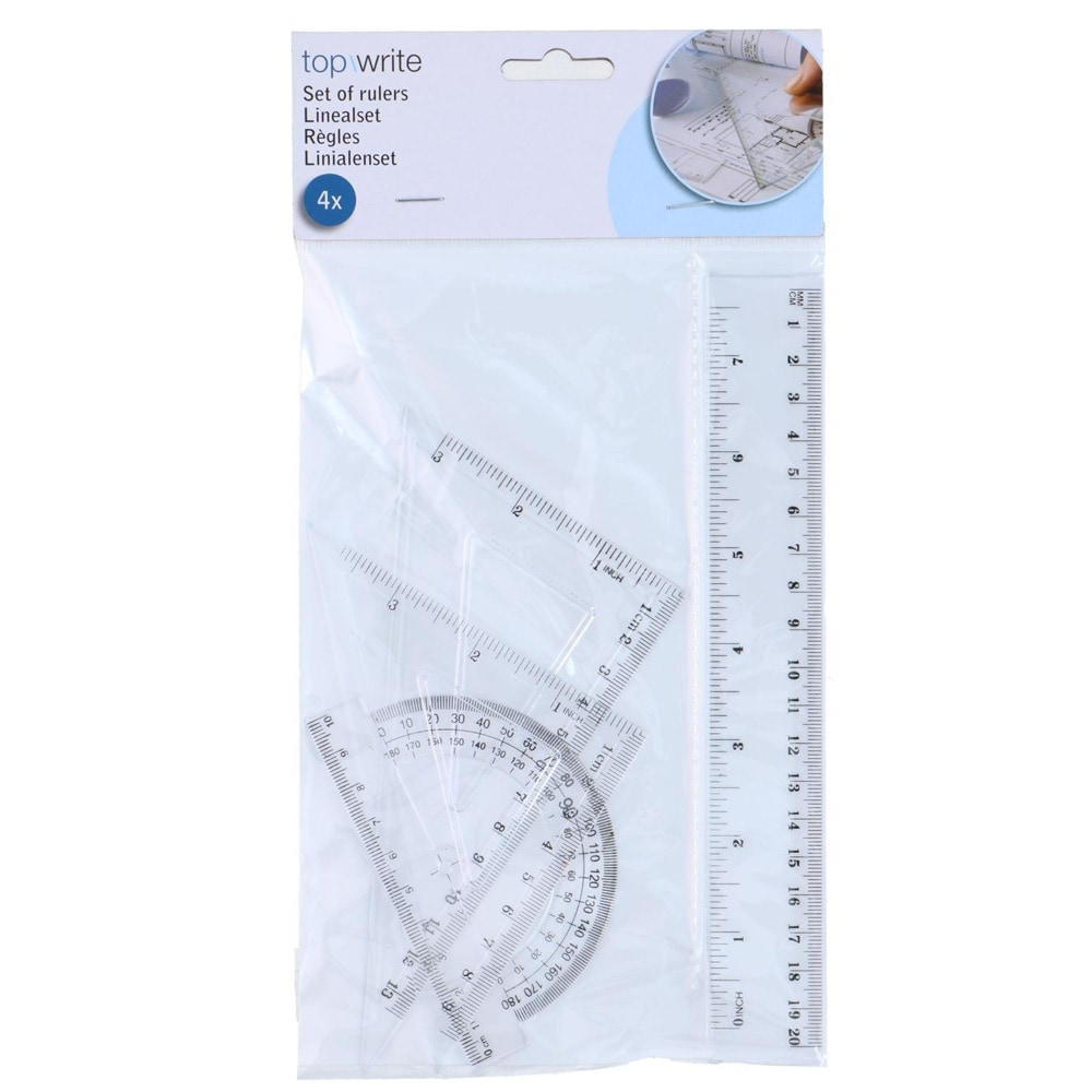 Linjalset 4 delar – geometrisystem / ritset med linjal, gradskiva och trianglar