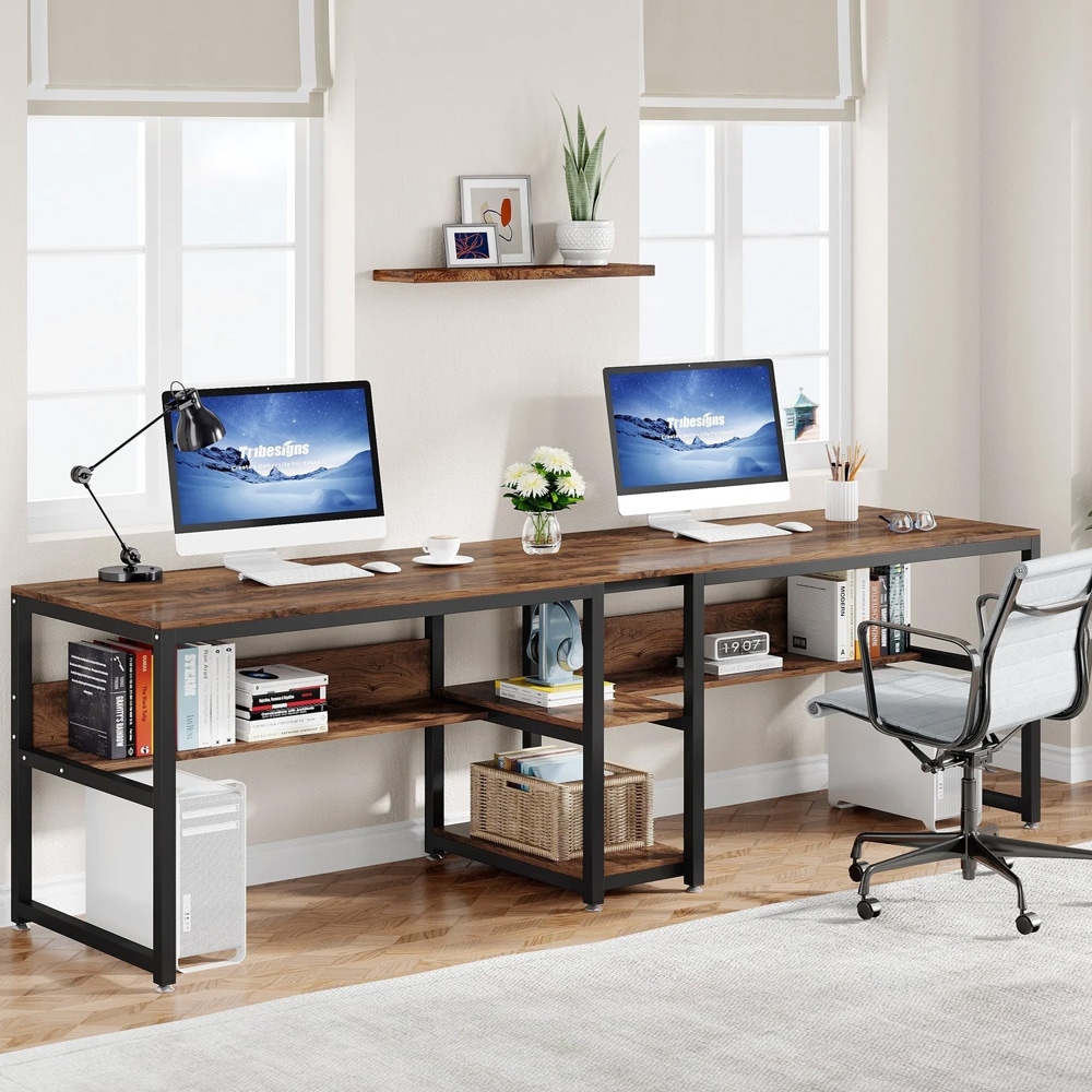 Skrivbord med 2 arbetsytor 200x60cm Brun/Svart