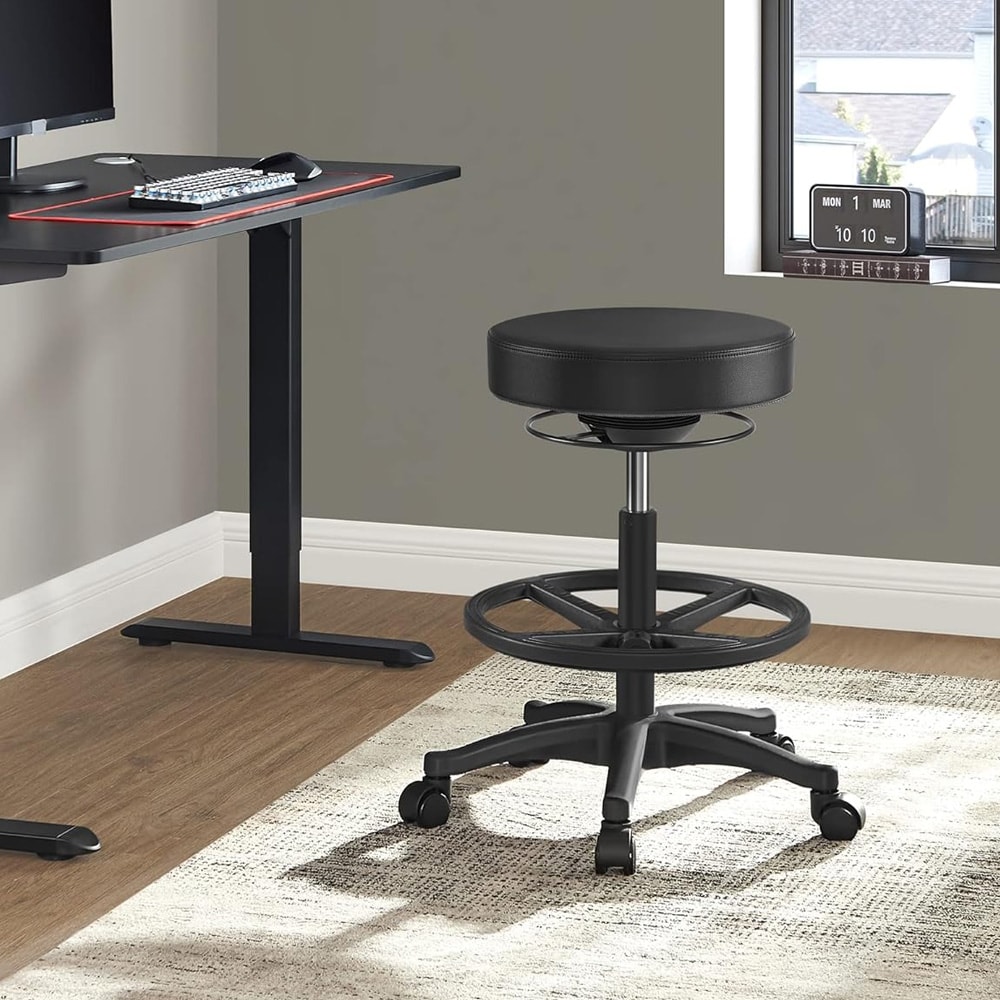 Justerbar arbetspall med fotring och säkerhetshjul - Svart