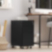 Svart skrivbord med hyllor och metallram – 120 x 60 x 76 cm