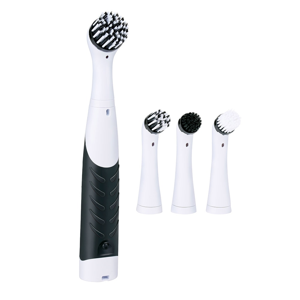 Batteridriven rengöringsborste med multifunktionell design och tre utbytbara borsthuvuden