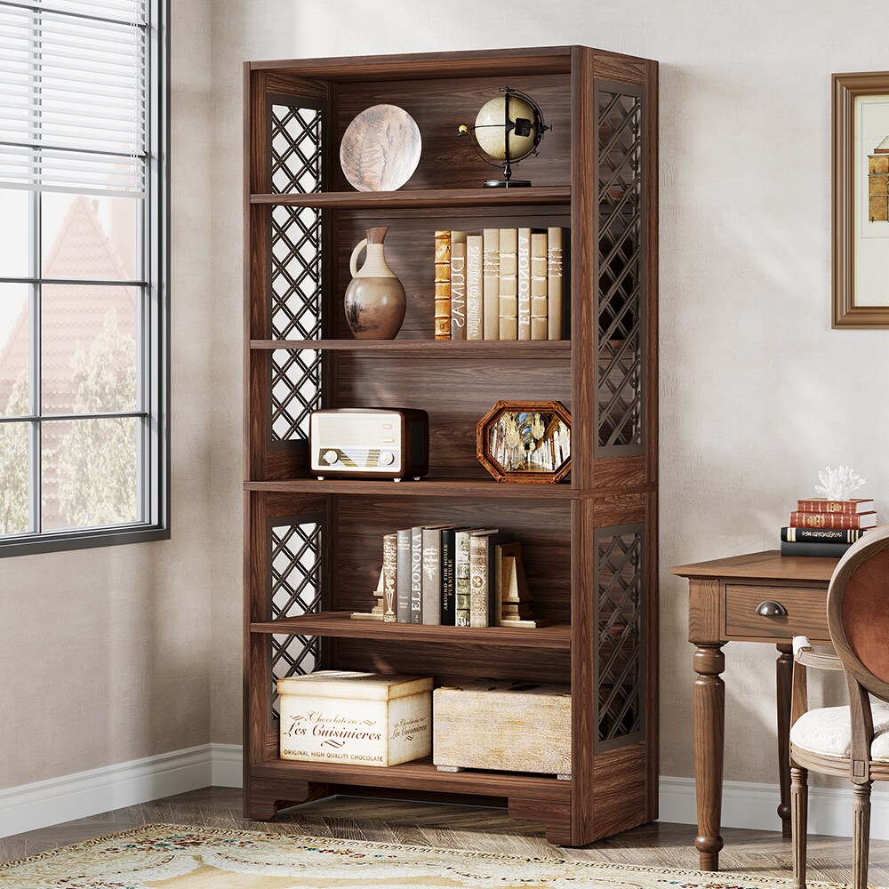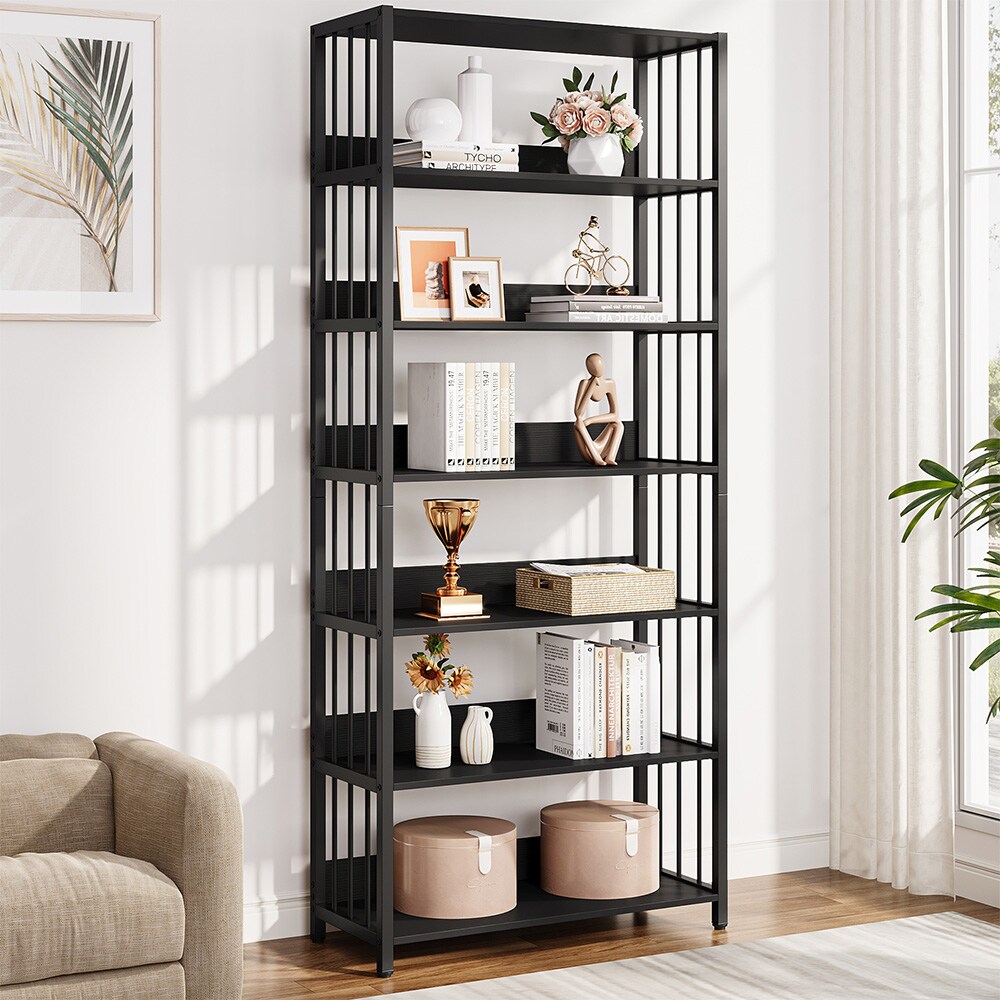 Industriell bokhylla med metallram och sex hyllplan