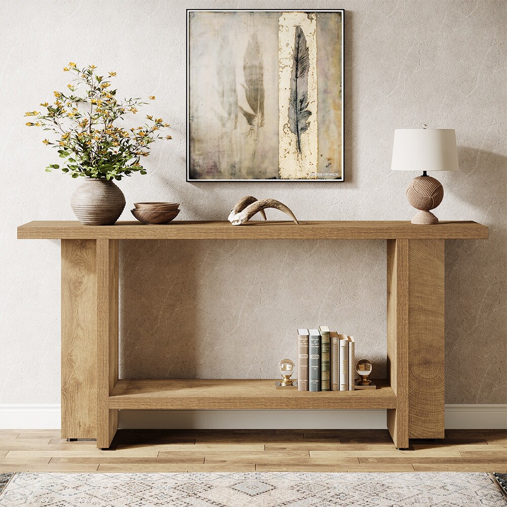 Avlastningsbord i trä med tvåfärgad design och nedre hylla 160x30x82cm
