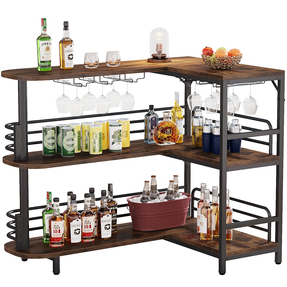 L-Format Barbord med vinglashållare Metall/Trä