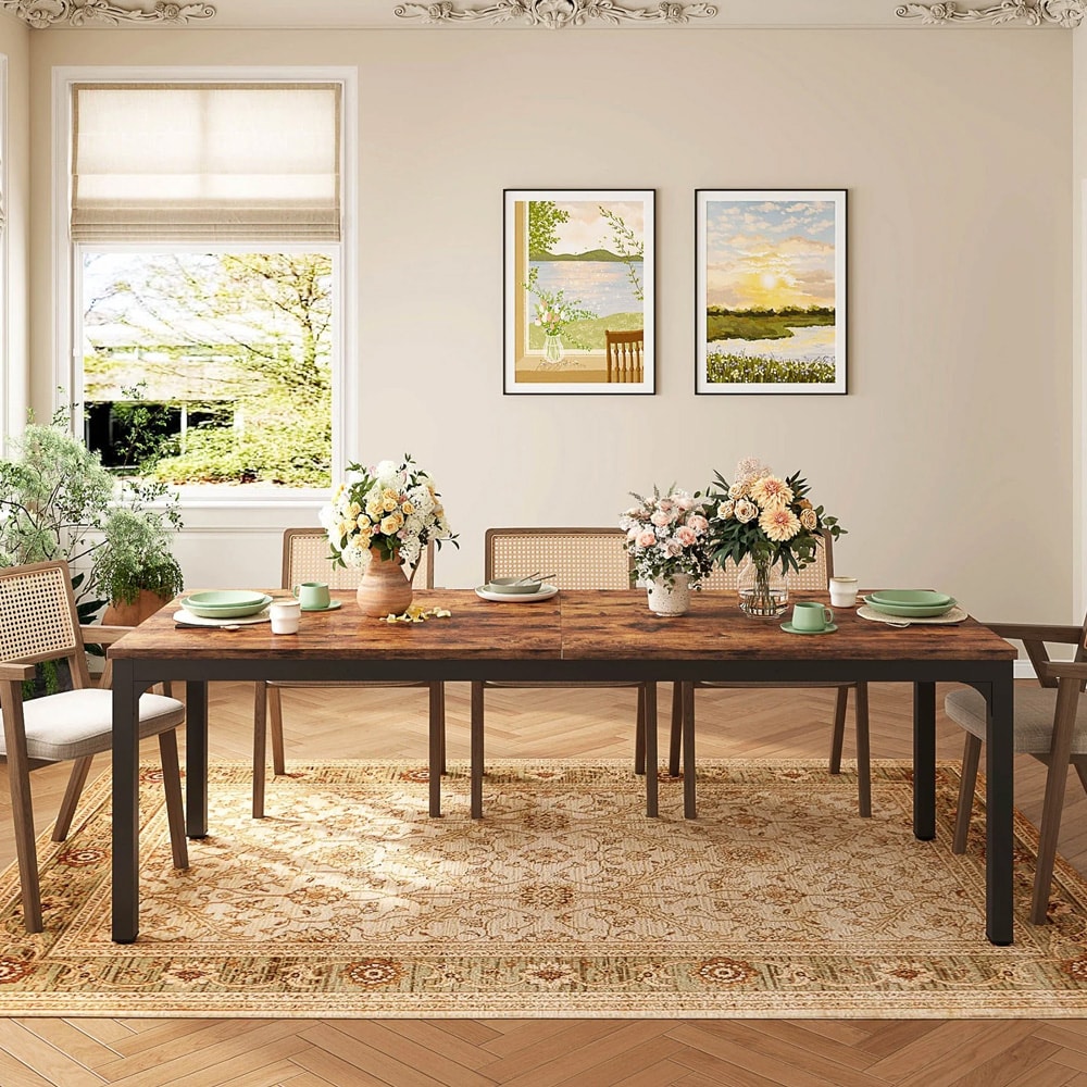 Matsalsbord med metallstomme 200x70cm - Brun/Svart
