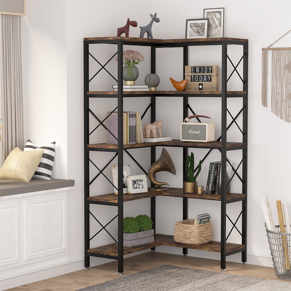 Industriell hörnbokhylla med 7 hyllplan och stabil metallram