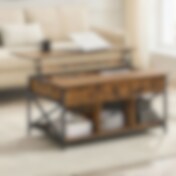 Soffbord med lyftbar bordsskiva / öppen och dold förvaring / 60x100cm / rustik brun / svart