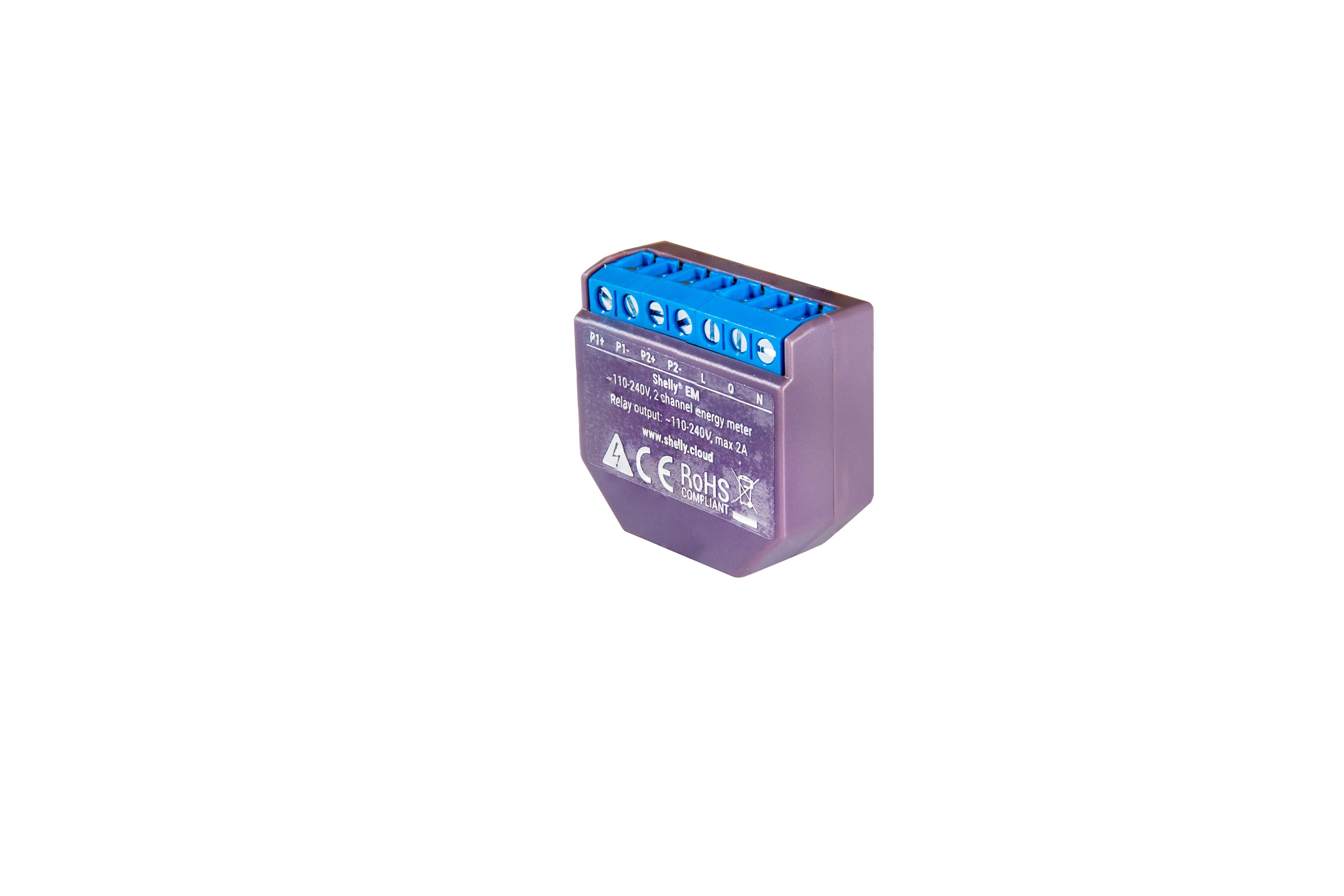 Shelly EM – Relä och Wi‑Fi‑energimätare – utan klämmor – mätning upp till 2×120 A