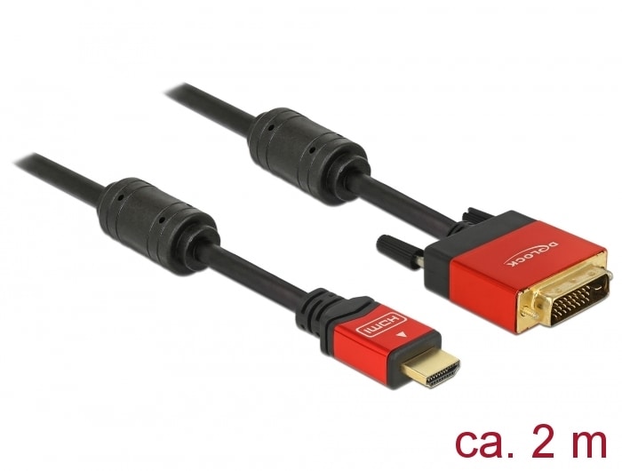 Delock High Speed HDMI-kabel, HDMI-A hane till DVI-D Dual Link hane, 2 m