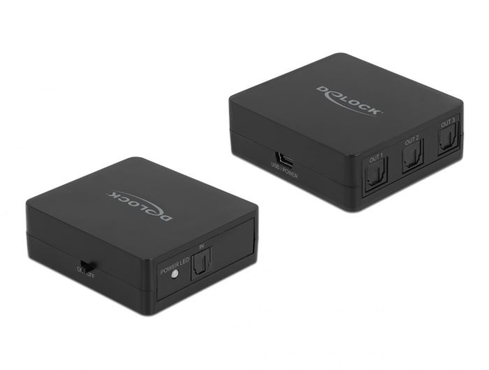 Delock S/PDIF TOSLINK-splitter 1 in 3 ut med USB-strömförsörjning