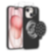 Skal med Magsafe och sugpropp + Skärm- och linsskydd till iPhone 15 Plus - Svart