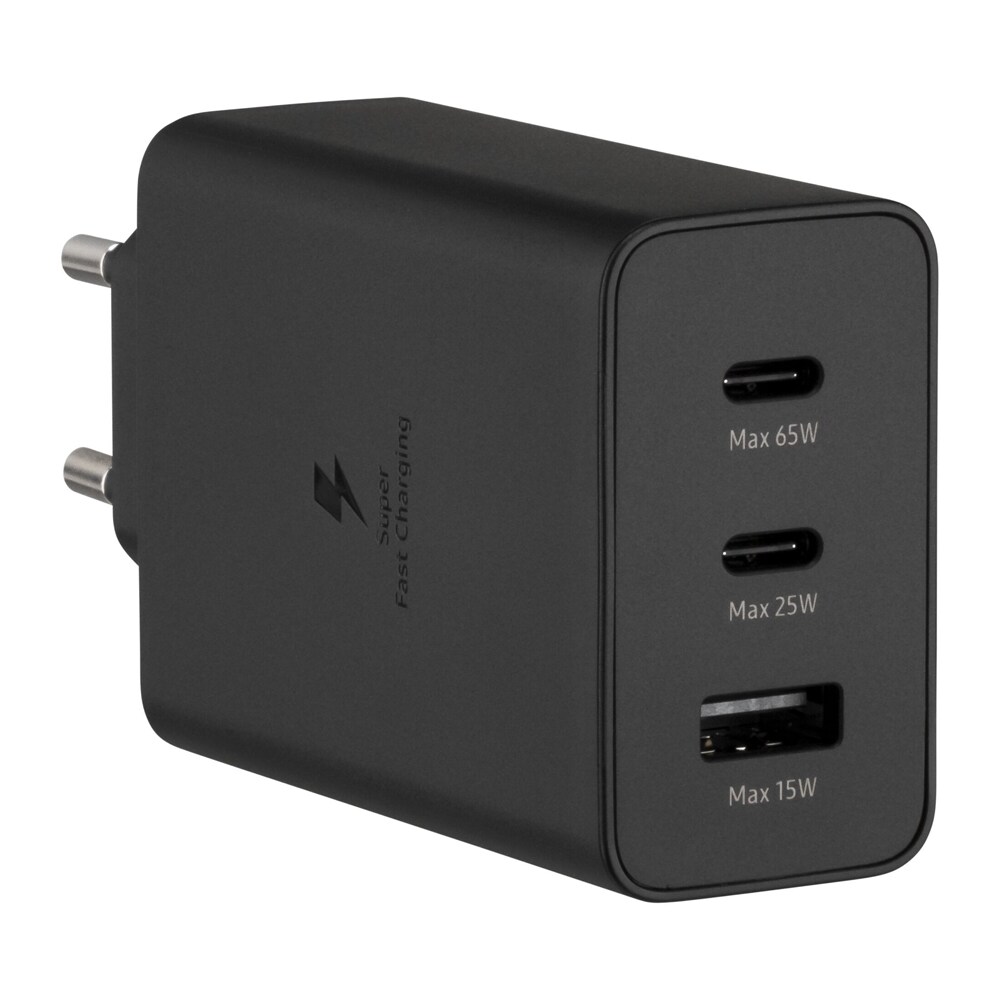 USB-laddare med GaN-teknik, 2x USB-C PD och 1x USB-A – upp till 65 W