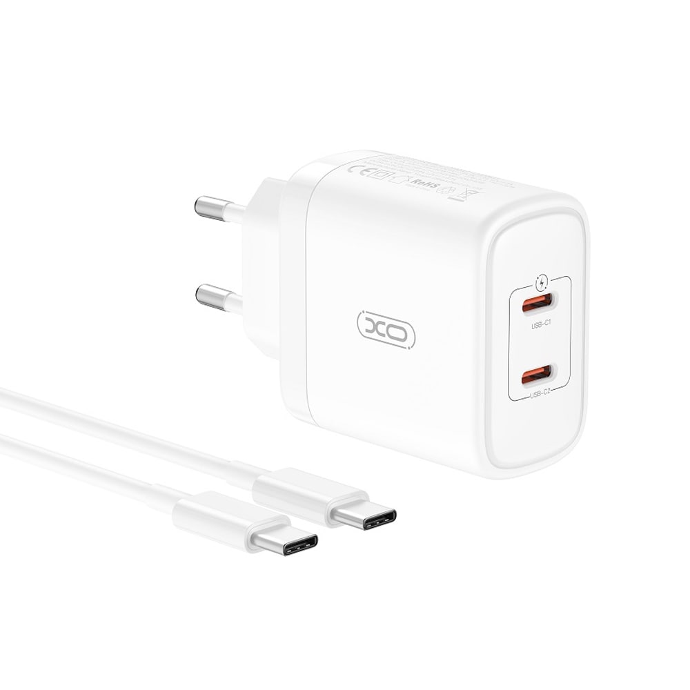 XO USB-laddare med 2xUSB-C PD 50W + USB-C-kabel