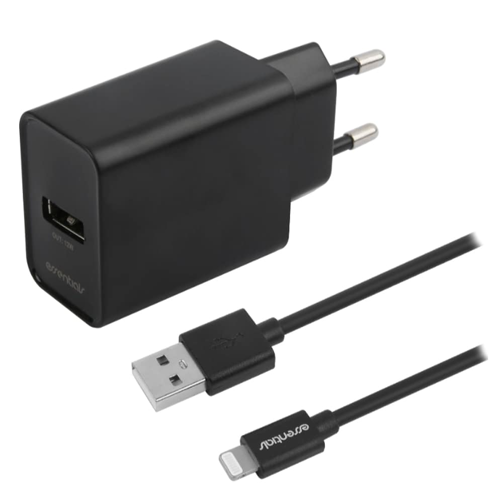 Essentials USB-laddare 12W MFI med USB till Lightning-kabel - Svart