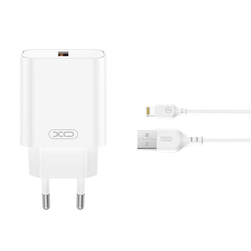 XO USB-Laddare med USB QC 18W + USB till Lightningkabel