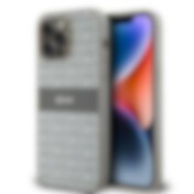 DKNY läderfodral med rutigt monomönster och tryckta ränder för iPhone 14 Pro Max - Svart