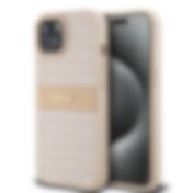 DKNY läderfodral med rutigt monomönster och tryckta ränder för iPhone 15 / 14 / 13 - rosa