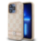 DKNY läderfodral med rutigt monomönster och tryckta ränder för iPhone 14 Pro Max - rosa
