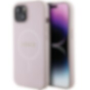 Guess Saffiano MagSafe-fodral för iPhone 15 Plus - rosa