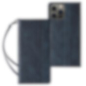 Magnet Remfodral för iPhone 12 Pouch Plånbok + Mini nyckelband Hänge Blå