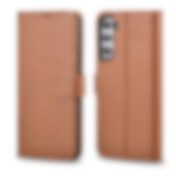 iCarer Haitang läderplånboksfodral för Samsung Galaxy S22+ (brun, AKSM05BN)