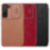 Nillkin Qin Leather Pro Case för Samsung Galaxy S22+ Kameraskydd Flip Cover Holster Svart