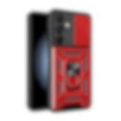 Hybrid Armor Camshield med kameraskydd och metallring för Samsung Galaxy S24 FE - Röd