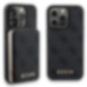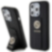 Guess Grip Stand 4G Saffiano Strass-fodral för iPhone 15 Pro Max - svart