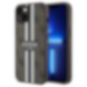 Guess 4G MagSafe-fodral med tryckta ränder för iPhone 15 Pro Max - brun