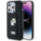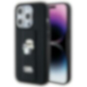 Karl Lagerfeld Gripstand Saffiano Karl&Choupette Pins fodral för iPhone 15 Pro Max - svart