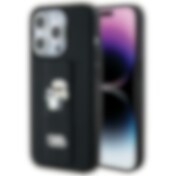 Karl Lagerfeld Gripstand Saffiano Karl&Choupette Pins fodral för iPhone 14 Pro - svart