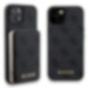 Guess 4G Metall Logo fodral set för iPhone 15 + 5000mAh MagSafe powerbank - svart