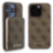Guess 4G Metall Logo fodral set för iPhone 15 Pro + 5000mAh MagSafe powerbank - brun