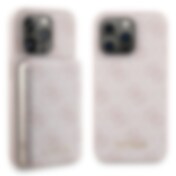 Guess 4G Metall Logo fodral set för iPhone 15 + 5000mAh MagSafe powerbank - rosa