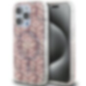 Guess 4G MagSafe-fodral med tryckta ränder för iPhone 15 Pro - rosa