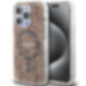 Guess 4G MagSafe-fodral med tryckta ränder för iPhone 15 Pro - brun