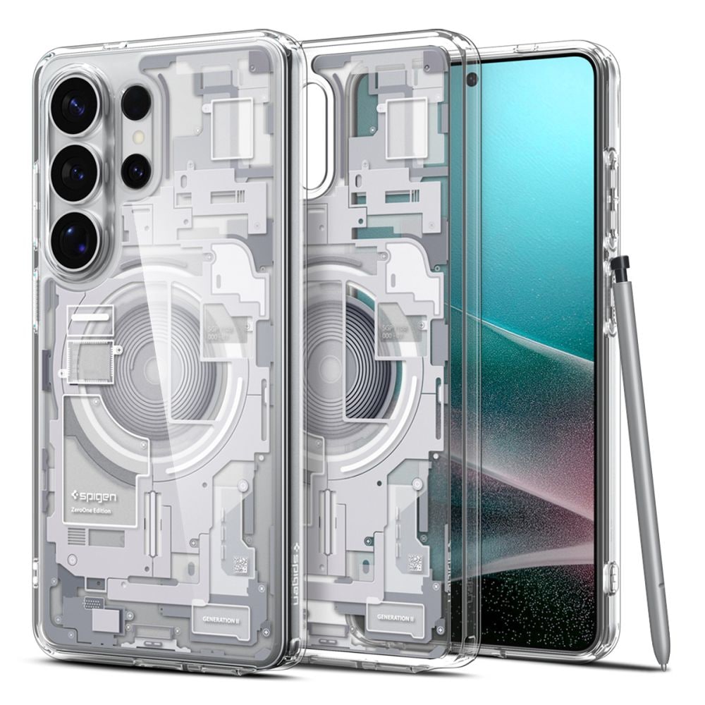Spigen Ultra Hybrid Mag MagSafe-fodral för Samsung Galaxy S26 Ultra Zero One - Klar och vit