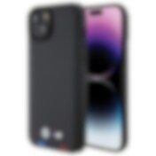 BMW BMHCP15M22PTDK iPhone 15 Plus 6,7" svart/svart Läder Stämpel Tricolor